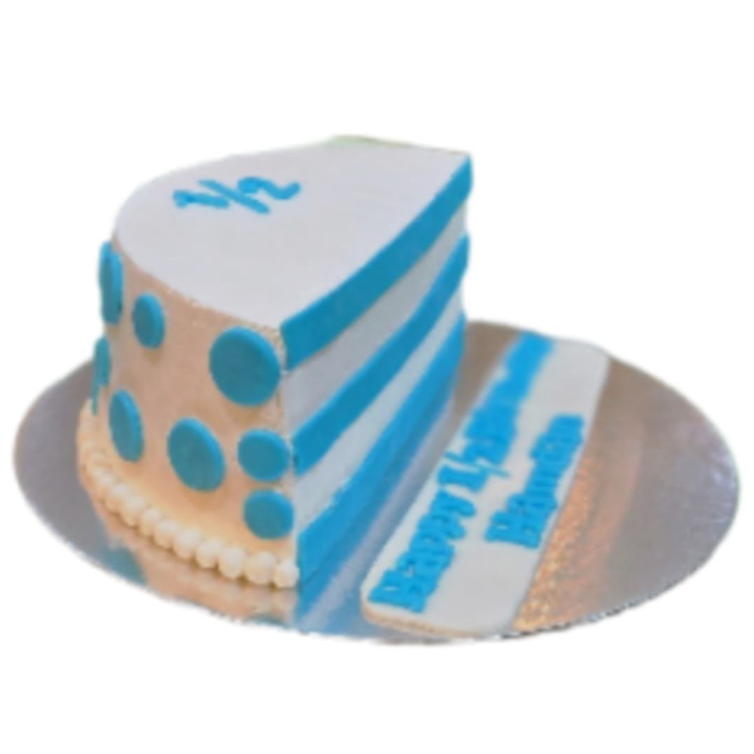 Celebrate your little one’s 6-month milestone with our stunning Blue & White Half Birthday Cake. This uniquely designed half-slice cake is perfect for baby milestones and personalized occasions. Available for custom orders!