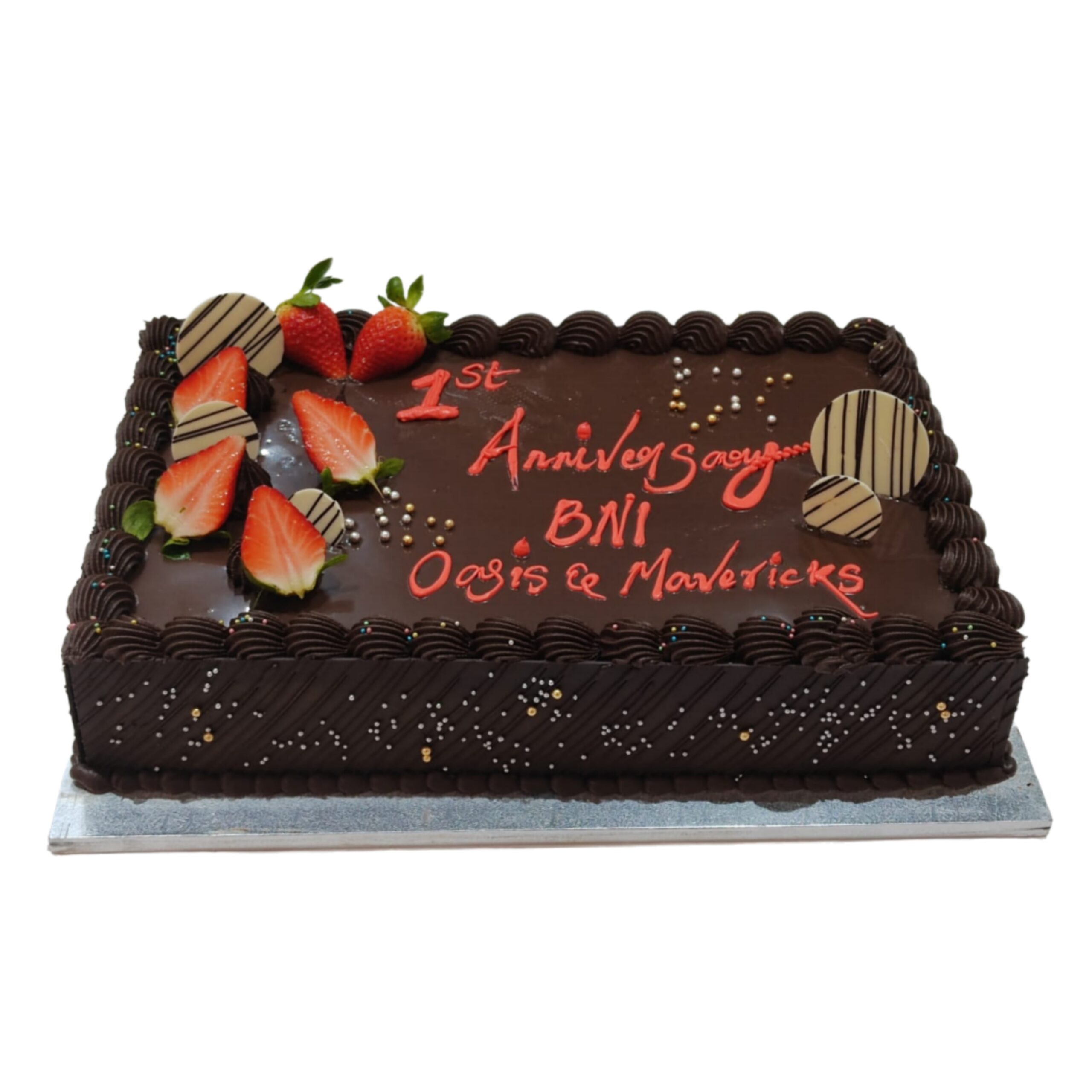 Mark your milestones with our handcrafted celebration cakes, made with love and premium ingredients. A decadent chocolate cake, adorned with fresh strawberries and elegant chocolate garnishes.