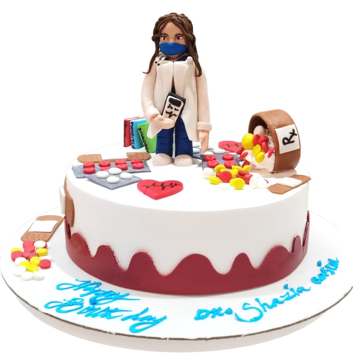 A charming birthday cake designed with medical details – ideal for aspiring doctors and healthcare heroes.