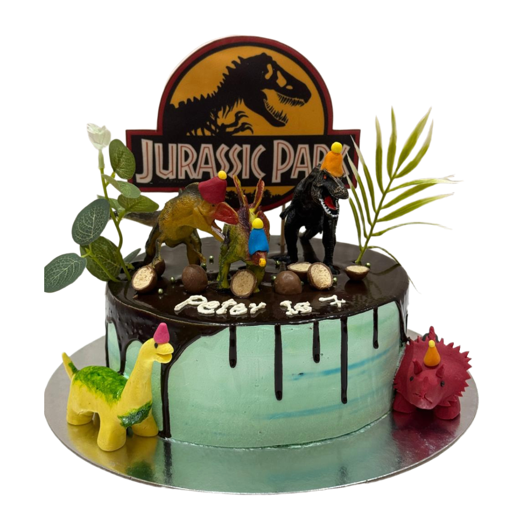 Dive into a prehistoric adventure with our Jurassic Cake, featuring roaring dinosaurs, edible fossils, and lush greenery – perfect for your little dino explorer.