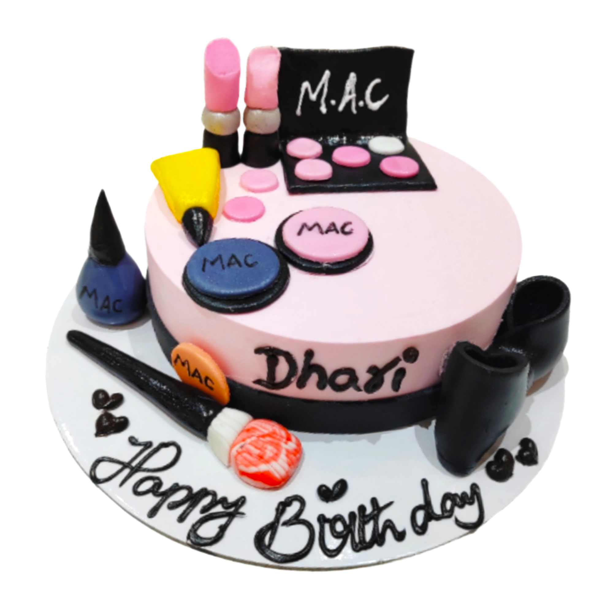 Perfect for beauty enthusiasts! Celebrate with a chic MAC makeup-themed birthday cake designed especially for Dhari. Featuring MAC products in edible form, this custom cake is the ideal treat for any makeup lover’s special day. Order now and add a little glam to your celebration!