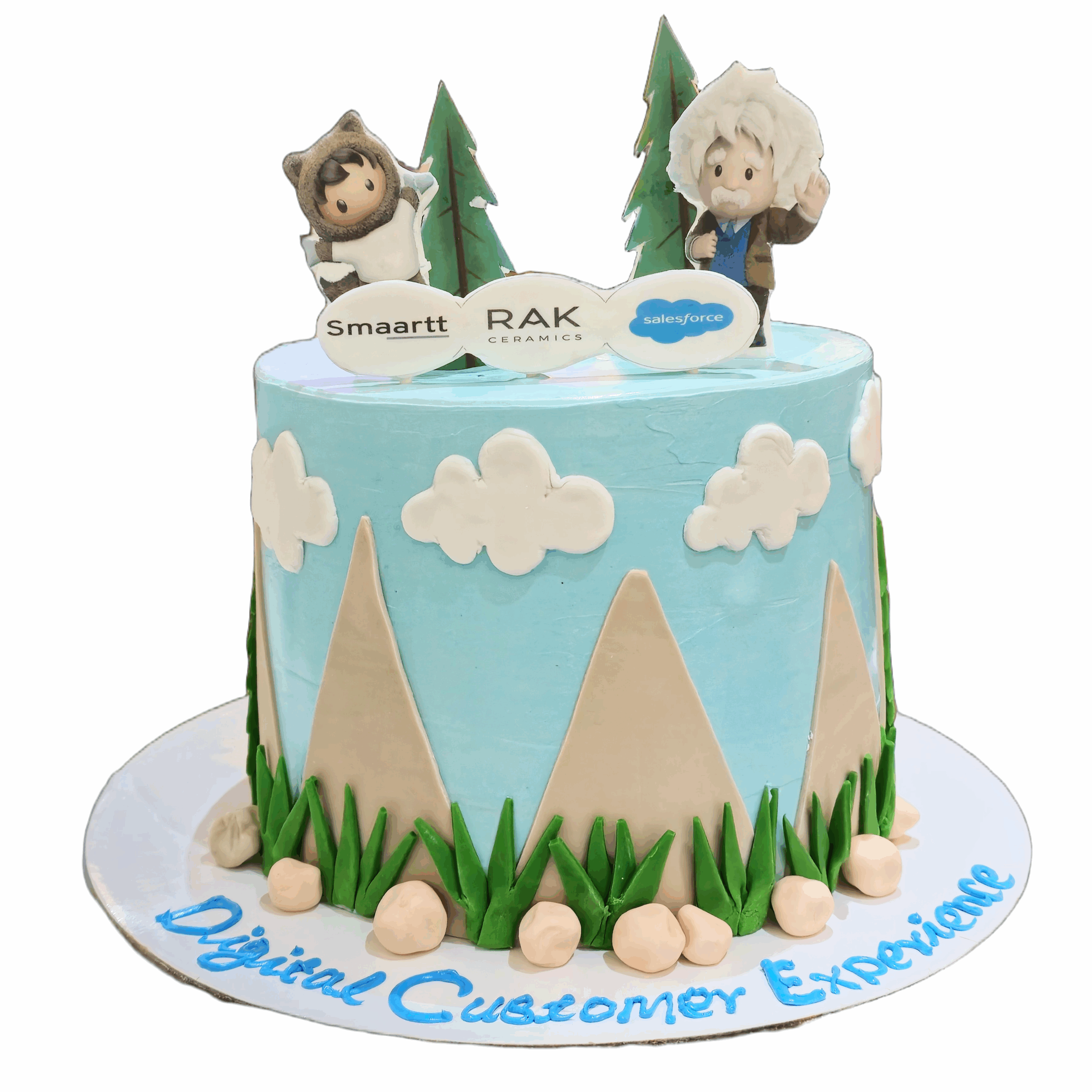 Celebrate professional achievements with our Milestone Celebratory Cake, designed with cloud details, mountain peaks, and brand logos. Add a personalized message or logo to make your business celebration extra sweet.