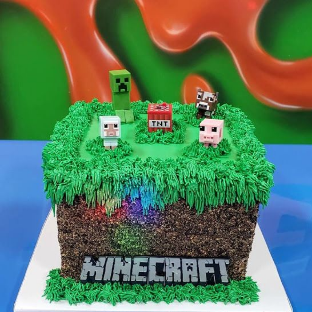 Build sweet memories with our Minecraft-themed cake, perfect for gamers and builders alike.