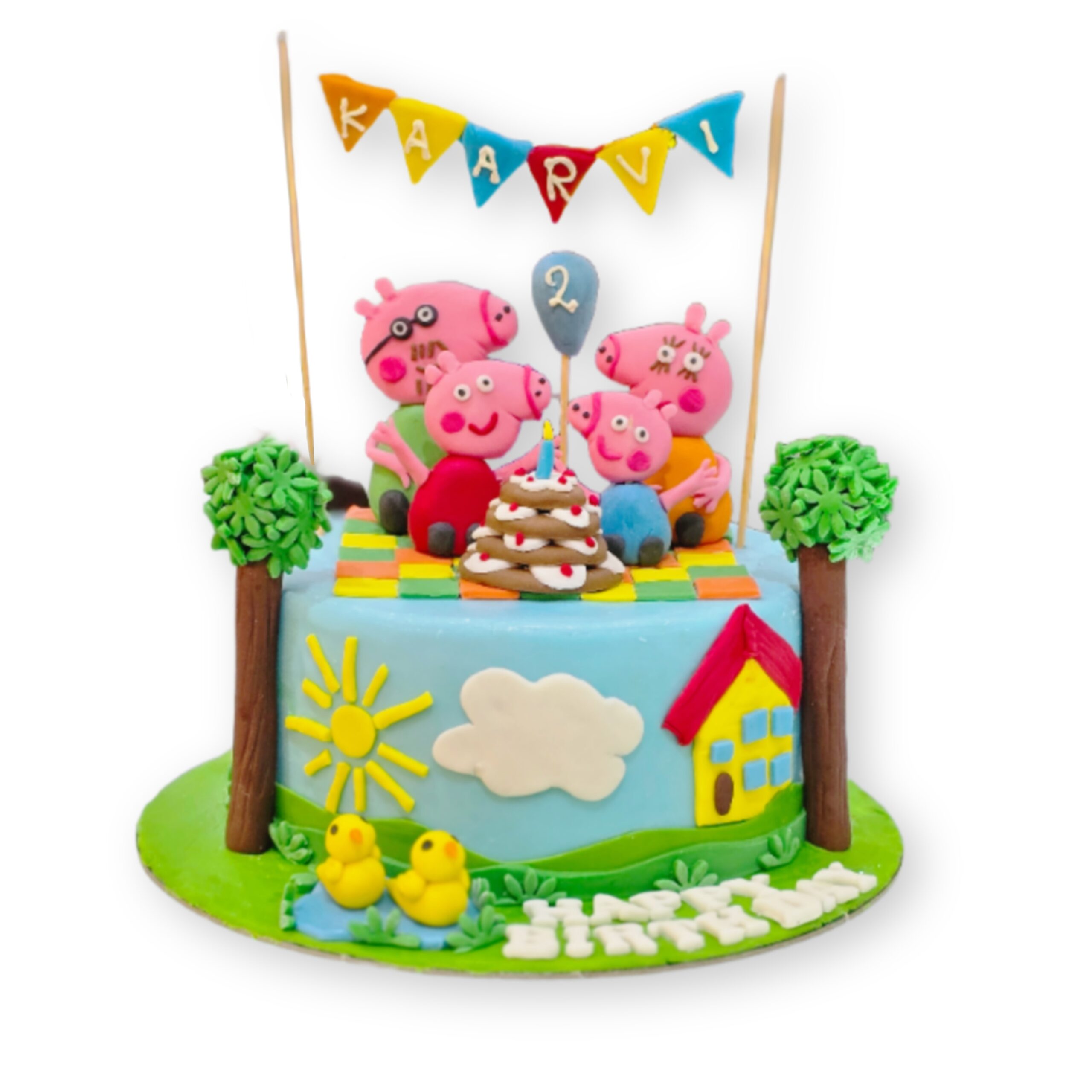 Make birthdays magical with our Peppa Pig Birthday Cake, featuring Peppa, George, Mummy Pig, and Daddy Pig. Decorated with a cheerful outdoor scene, this colorful cake is perfect for toddlers and Peppa Pig fans.