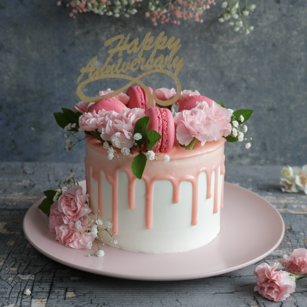 Pink Floral and Macaron Delight Cake
