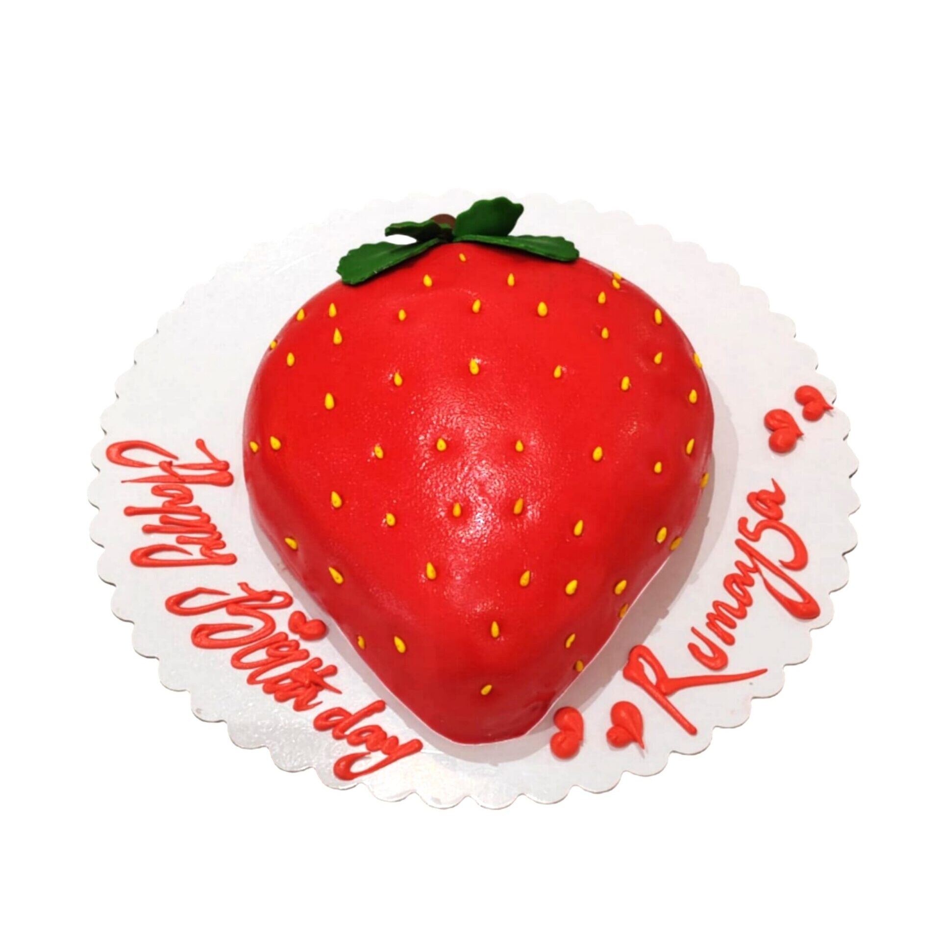 This adorable strawberry-shaped cake is bursting with charm and flavor. Perfect for fruit lovers or themed birthday parties, this cake brings a refreshing twist to your celebration.