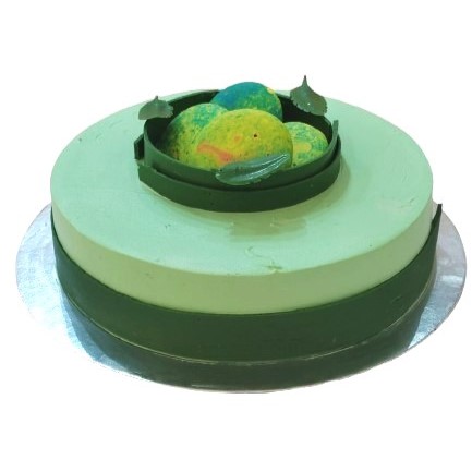 Eggless pistachio sponge filled with pistachio ganache and whipped cream, coated in pistachio-flavored white chocolate for a nutty delight.